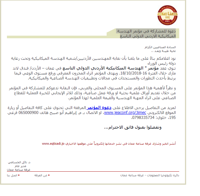 نود اعلامكم بناءً على ما بلغنا بأن نقابة المهندسين الأردنيين/شعبة الهندسة الميكانيكية وتحت رعاية دولة رئيس الوزراء