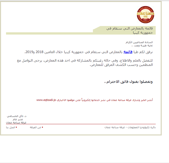للتفضل بالعلم والاطلاع، وفي حالة رغبتكم بالمشاركة في احد هذه المعارض، يرجى التواصل مع المنظمين وحسب الكشف المرفق للمعارض.