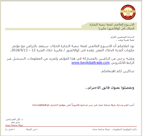 وعليه يرجى من الراغبين بالمشاركة في هذا المؤتمر ولمزيد من المعلومات، التسجيل عبر الرابط الالكتروني www.kwglobaltrade.com