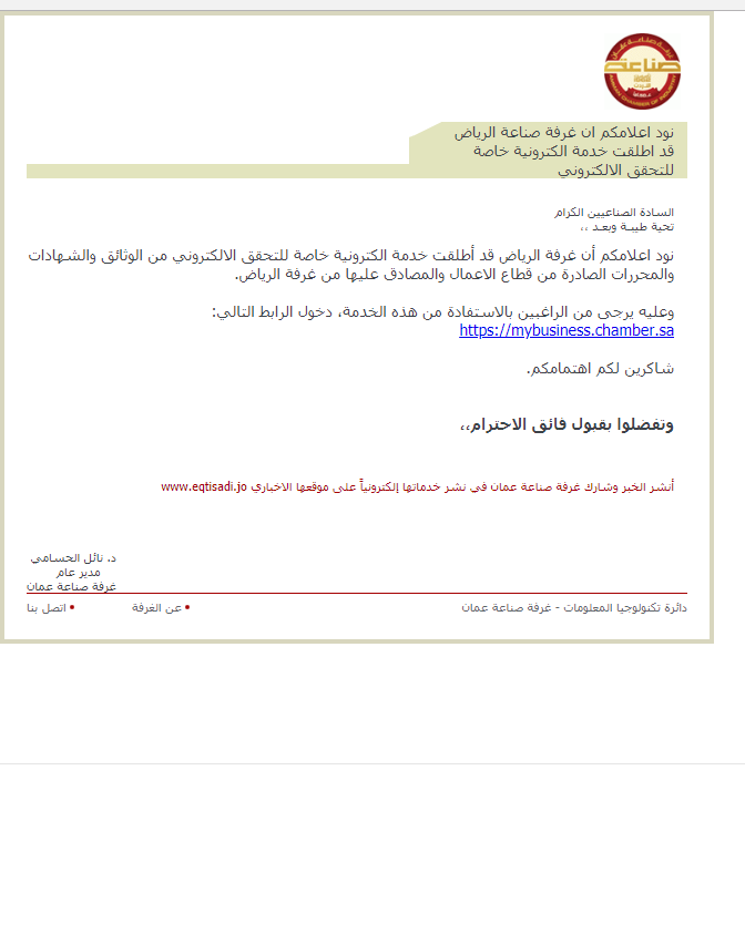 نود اعلامكم أن غرفة الرياض قد أطلقت خدمة الكترونية خاصة للتحقق