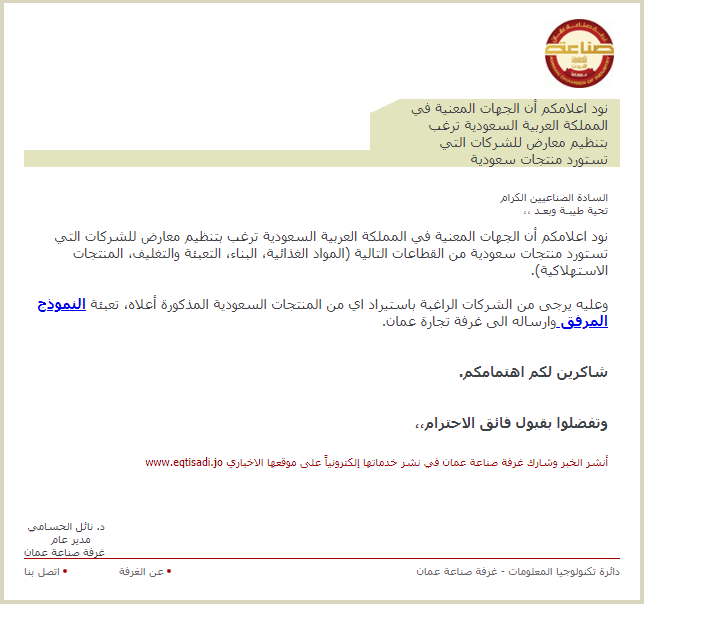 نود اعلامكم أن الجهات المعنية في المملكة العربية السعودية ترغب بتنظيم معارض للشركات التي تستورد منتجات سعودية