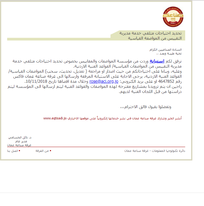 نرفق لكم استبانة وردت من مؤسسة المواصفات والمقاييس بخصوص تحديد