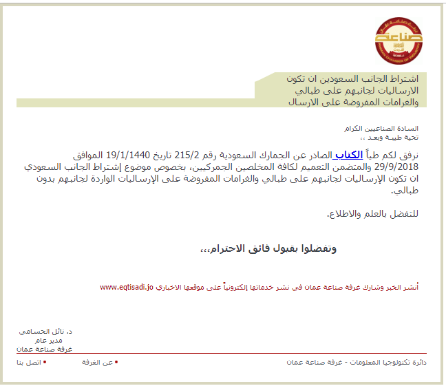 نرفق لكم طياً الكتاب الصادر عن الجمارك السعودية رقم 215/2 تاريخ