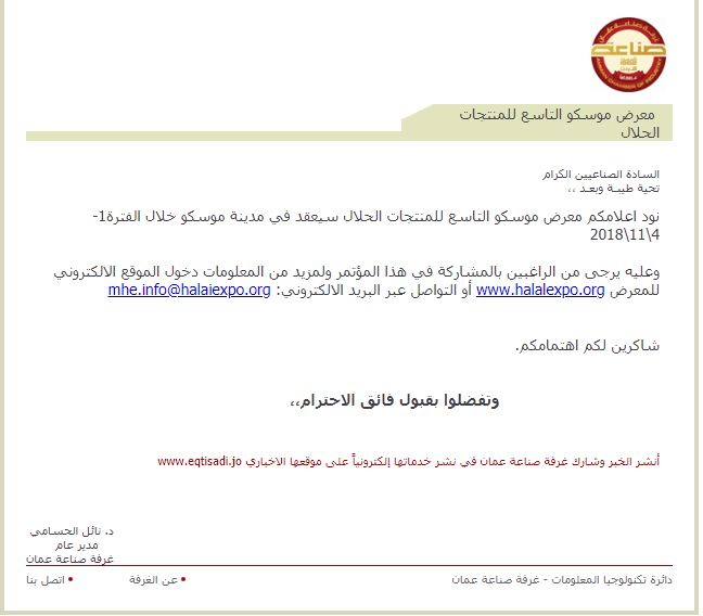 الموقع الالكتروني للمعرض www.halalexpo.org أو التواصل عبر البريد الالكتروني: