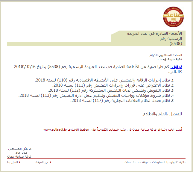 لكم طيا صورة عن الأنظمة الصادرة في عدد الجريدة الرسمية رقم (5538) بتاريخ