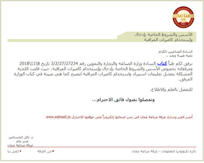 وإستخدام كاميرات المراقبة، حيث قامت اللجنة المشكلة بتعديل تعليمات استيراد