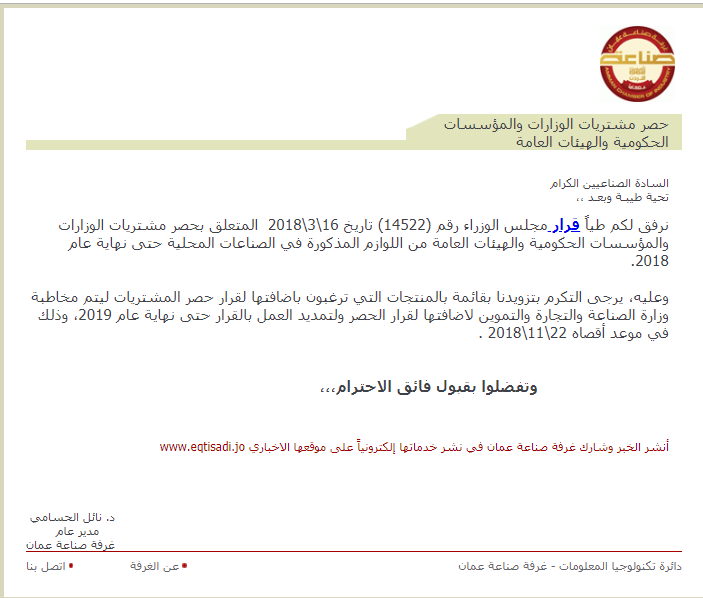 نرفق لكم طياً قرار مجلس الوزراء رقم (14522) تاريخ 16\3\2018 المتعلق بحصر مشتريات الوزارات والمؤسسات