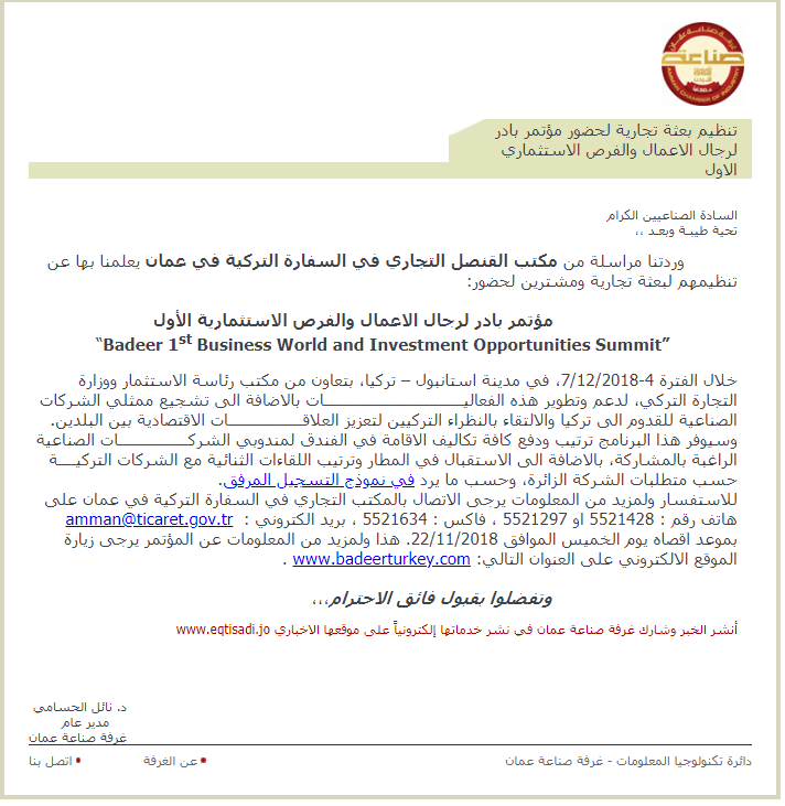 القنصل التجاري في السفارة التركية في عمان يعلمنا بها عن تنظيمهم لبعثة تجارية