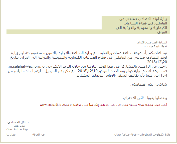 نود اعلامكم بأن غرفة صناعة عمان وبالتعاون مع وزارة الصناعة