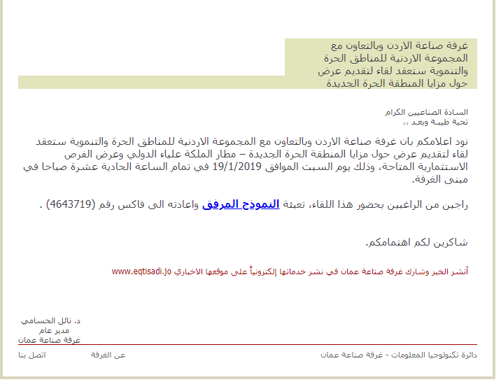 ود اعلامكم بان غرفة صناعة الاردن وبالتعاون مع المجموعة الاردنية