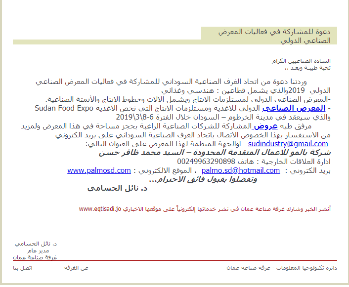 الخصوص الاتصال باتحاد الغرف الصناعية السوداني على بريد الكتروني sudindustry@gmail.com اوالجهة المنظمة لهذا المعرض على العنوان