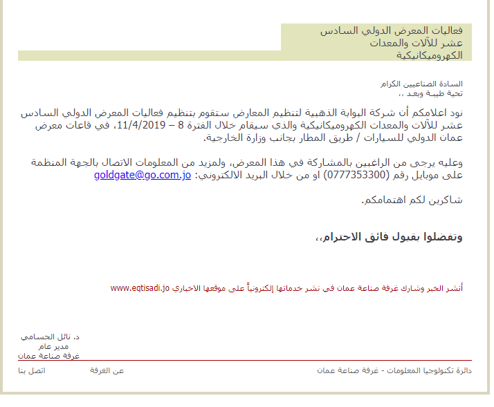 وعليه يرجى من الراغبين بالمشاركة في هذا المعرض، ولمزيد من المعلومات الاتصال