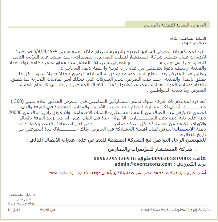 كما نود اعلامكم بان الغرفة سوف تدعم المشاركين الصناعيين في المعرض المذكور