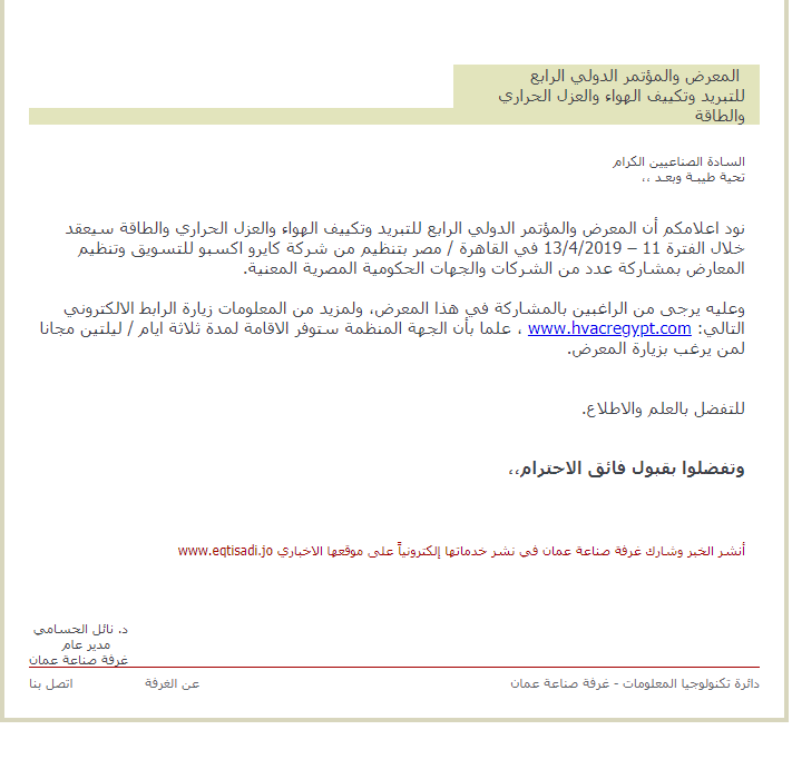 الرابط الالكتروني التالي: www.hvacregypt.com ، علما بأن الجهة المنظمة ستوفر