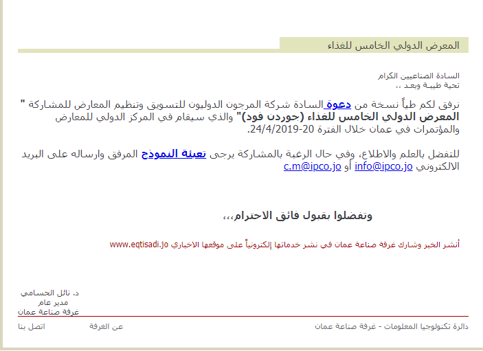 وتنظيم المعارض للمشاركة " المعرض الدولي الخامس للغذاء (جوردن فود)"