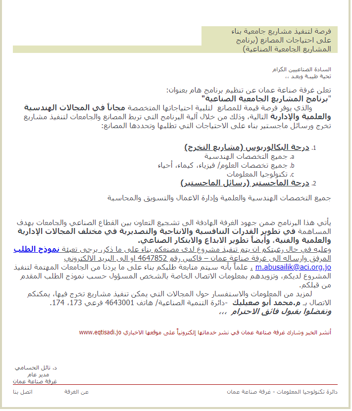 الى البريد الالكتروني m.abusailik@aci.org.jo ، علماً بأنه سيتم متابعة طلبكم