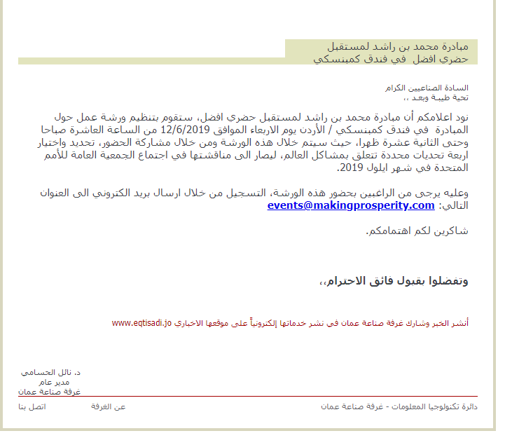 وعليه يرجى من الراغبين بحضور هذه الورشة، التسجيل من خلال ارسال بريد الكتروني الى العنوان التالي: events@makingprosperity.com