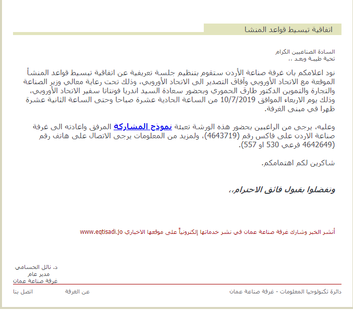 واعادته الى غرفة صناعة الاردن على فاكس رقم (4643719)، ولمزيد من المعلومات