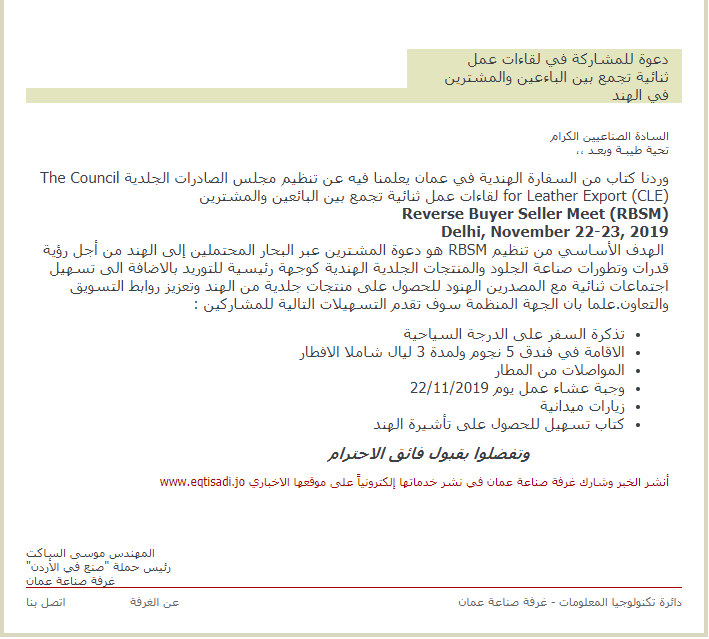 ثنائية مع المصدرين الهنود للحصول على منتجات جلدية من الهند وتعزيز روابط
