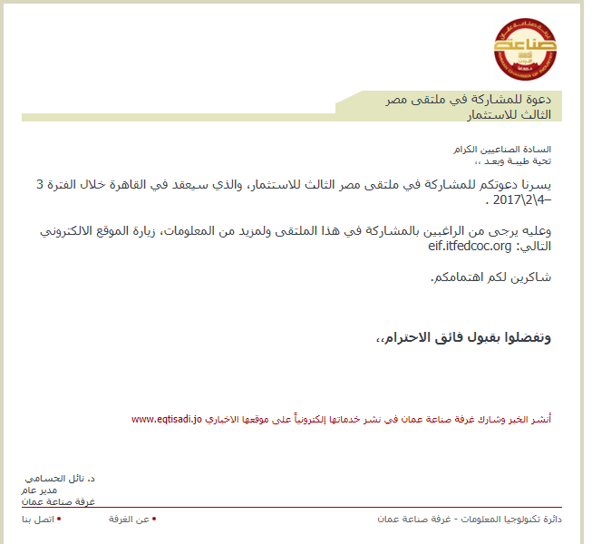 وعليه يرجى من الراغبين بالمشاركة في هذا الملتقى ولمزيد من المعلومات، زيارة الموقع الالكتروني التالي: eif.itfedcoc.org