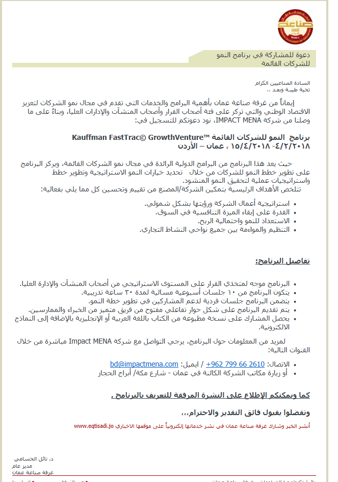 الاتصال: +962 799 66 2610 / ايميل: bd@impactmena.com